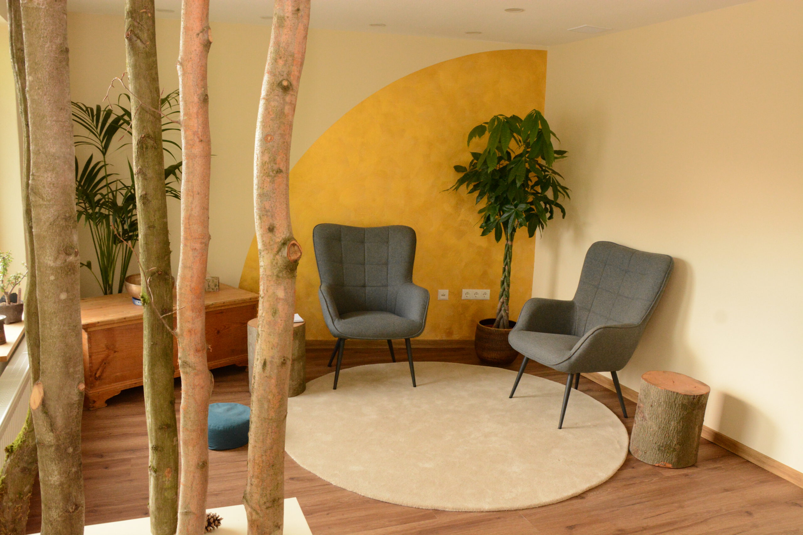 Für eine Praxis für gestalttherapeutisches Coaching wurde ein Haupttherapieraum mit multifunktionalem Nebenraum und Erschließungskonzept evidenzbasiert entworfen. Dabei standen vor allem die konkrete psychotherapeutische Arbeitsweise der Therapeutin und damit verbundene Konstrukte wie Selbstwirksamkeitserwartung und Sicherheit im Zentrum der Betrachtung.